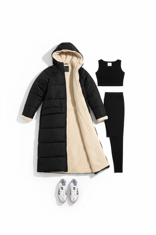 DOUBLE TROUBLE Black Reversible Borg Puffer Coat
