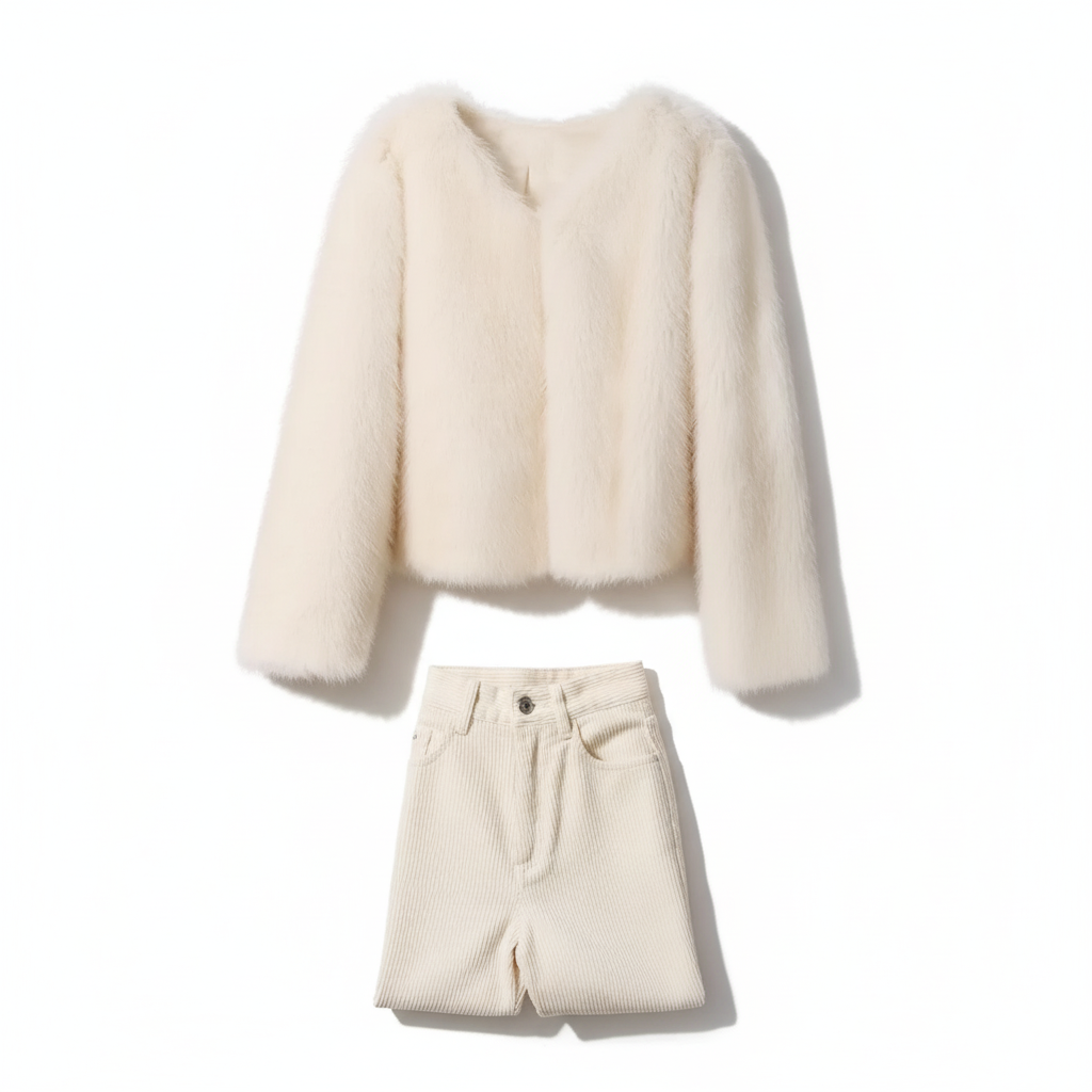 Women’s Plush Faux For Jacket – Luxury & Comfort Soft faux fur jacket with relaxed fit and long sleeves. Elegant, cozy layer for casual or special occasions.